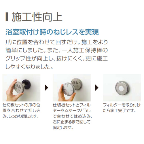 また、浴室取付時のねじレスを実現し、施工性も向上しました。