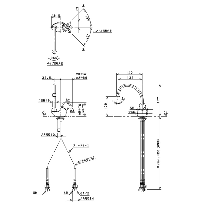 洗面用蛇口 DaReya[台][シングルレバー混合水栓][スパウト133mm][文鳥のパーチク][メス][一般地]