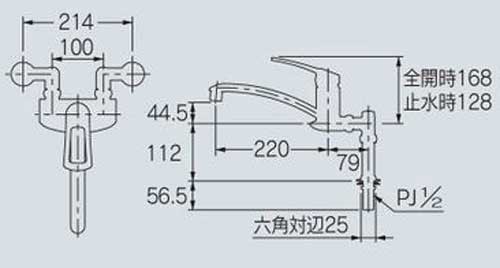 キッチン用蛇口[台][シングルレバー混合水栓][ツーホール][湯水芯203mm][スパウト220mm][一般地]