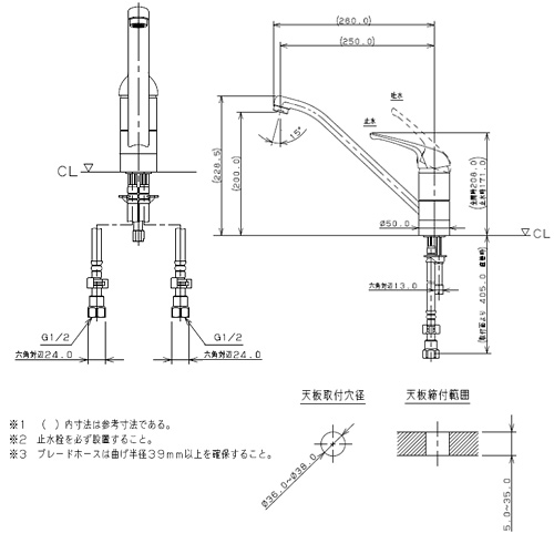 キッチン用蛇口[台][シングルレバー混合水栓][スパウト250mm][寒冷地]