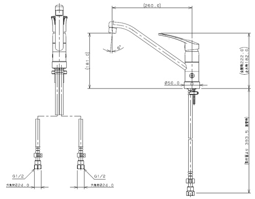 キッチン用蛇口[台][シングルレバー混合水栓][給水制限レバー][上面施工][首長260mm][寒冷地]