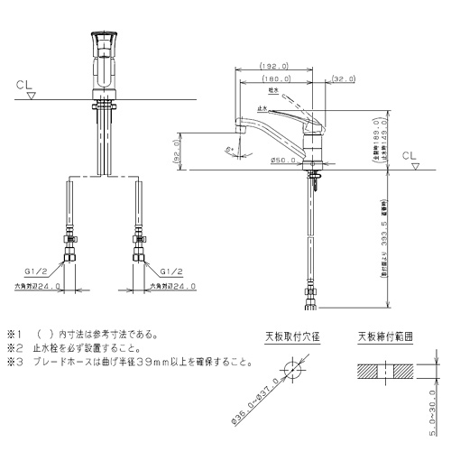 キッチン用蛇口[台][シングルレバー混合水栓][給湯制限レバー][上面施工][スパウト180mm][寒冷地]