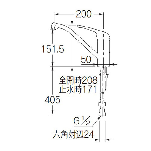 キッチン用蛇口[台][シングルレバー混合水栓][スパウト200mm][一般地]