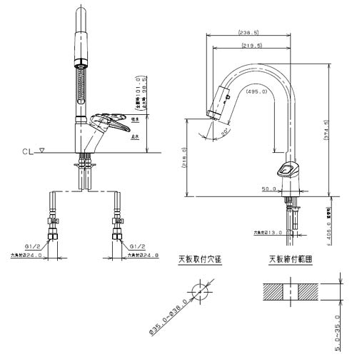 ・取付穴径35〜38ミリ・厚5〜35ミリ