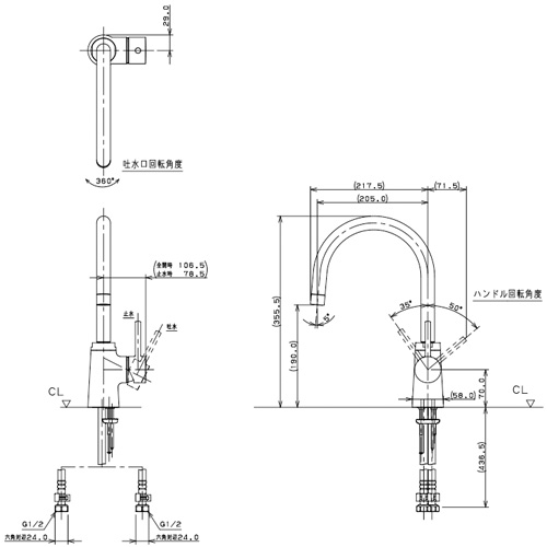 キッチン用蛇口 SYATORA[台][シングルレバー混合水栓][上面施工][スパウト205mm][吐水口高さ190mm][一般地寒冷地共用]