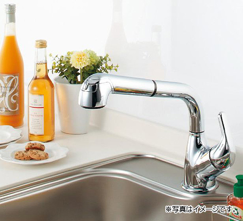 キッチン用蛇口[台][シングルレバー混合水栓][シャワー付][ホース引出式][スパウト265mm][一般地]