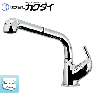キッチン用蛇口[台][シングルレバー混合水栓][シャワー付][ホース引出式][スパウト265mm][寒冷地]