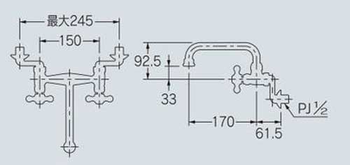 洗面用蛇口[壁][ツーハンドル混合栓][スパウト170mm][泡沫][一般地]