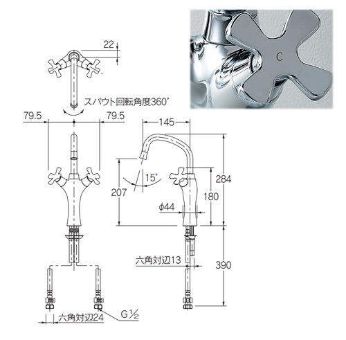 洗面用蛇口 hana[台][2ハンドル混合水栓][スパウト145mm][吐水口高さ207mm][一般地]