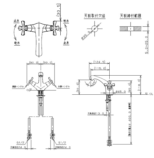 150-436|カクダイ|洗面用蛇口 hana[台][2ハンドル混合水栓][スパウト115mm][吐水口高さ91mm][一般地]|リフォームネクスト