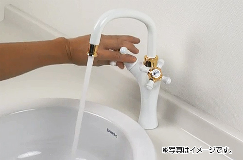 流れるような繊細な曲線が、まるで首をもたげた水鳥のように水周りを華やかに彩ります。