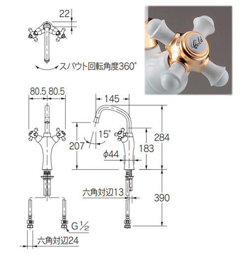 洗面用蛇口 鳥[台][2ハンドル混合水栓][スパウト145mm][吐水口高さ207mm][トール][一般地]