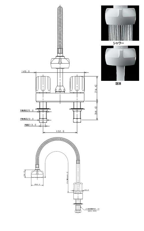 キッチン用蛇口[台][2ハンドルシャワー混合水栓][キッチン2穴台付][一般地寒冷地共用]