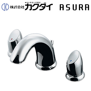 153-023|カクダイ|洗面用蛇口 ASURA[台][2ハンドル混合水栓][スパウト122mm][吐水口高さ91mm][引き棒付][一般地]|リフォームネクスト