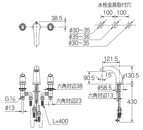 ・取付穴径スパウト35〜36mm、ハンドル30〜35mm