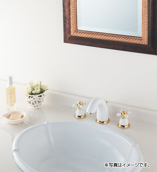 洗面用蛇口 鳥[台][2ハンドル混合水栓][スパウト122mm][吐水口高さ91mm][引き棒付][一般地]