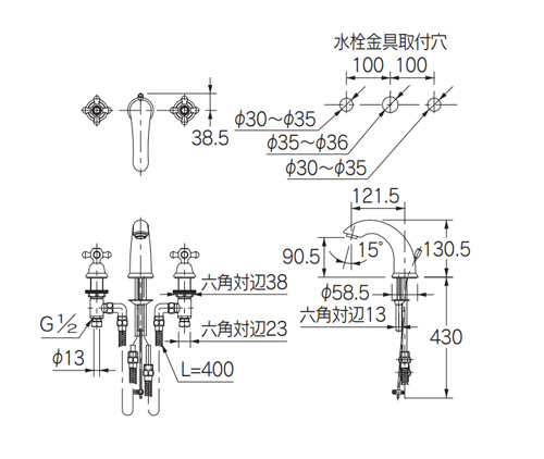 ・取付穴径スパウト35〜36mm、ハンドル30〜35mm