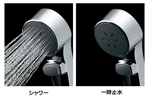 シャワーヘッドのボタンで一時止水が出来るタイプ。