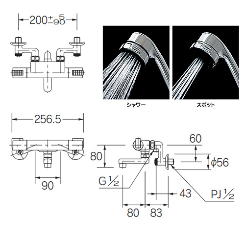浴室用蛇口 Ren[壁][洗い場専用][サーモスタット付シャワーバス混合水栓][スパウト80mm][寒冷地]