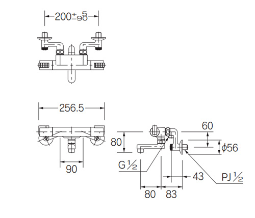 浴室用蛇口 Ren[壁][洗い場専用][サーモスタット付シャワーバス混合水栓][スパウト80mm][一般地]
