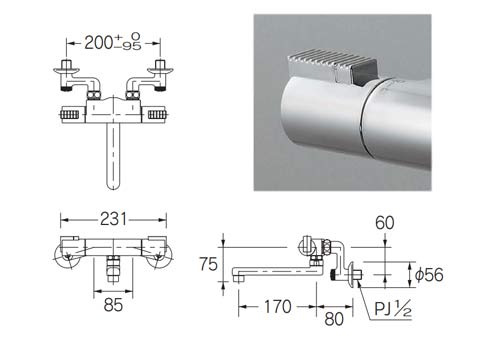浴室用蛇口[壁][浴槽・洗い場兼用][サーモスタット混合水栓][スパウト170mm][寒冷地]