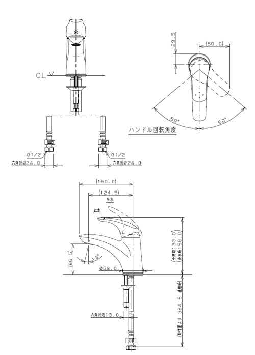 ・吐水口長さ124.5mm
