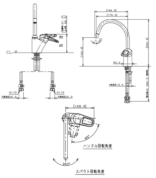 洗面用蛇口[台][シングルレバー混合水栓][スパウト175mm][吐水口高さ164mm][一般地寒冷地共用]