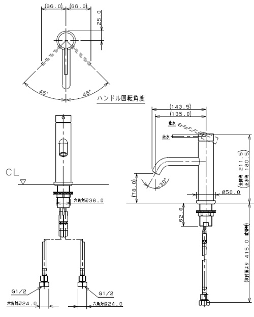 183-221|カクダイ|洗面用蛇口 VARUNA[台][シングルレバー混合水栓][スパウト135mm][吐水口高さ78mm][一般地寒冷地共用]|リフォームネクスト