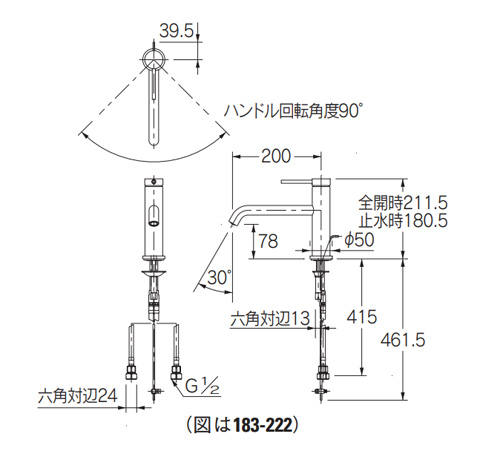 183-222|カクダイ|洗面用蛇口 VARUNA[台][シングルレバー混合水栓][スパウト200mm][吐水口高さ78mm][引き棒付][一般地寒冷地共用]|リフォームネクスト