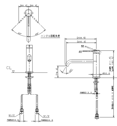 183-223|カクダイ|洗面用蛇口 VARUNA[台][シングルレバー混合水栓][スパウト200mm][吐水口高さ78mm][一般地寒冷地共用]|リフォームネクスト
