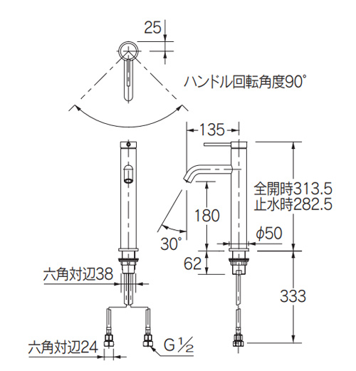 洗面用蛇口 VARUNA[台][シングルレバー混合水栓][スパウト135mm][吐水口高さ180mm][ミドル][一般地寒冷地共用]