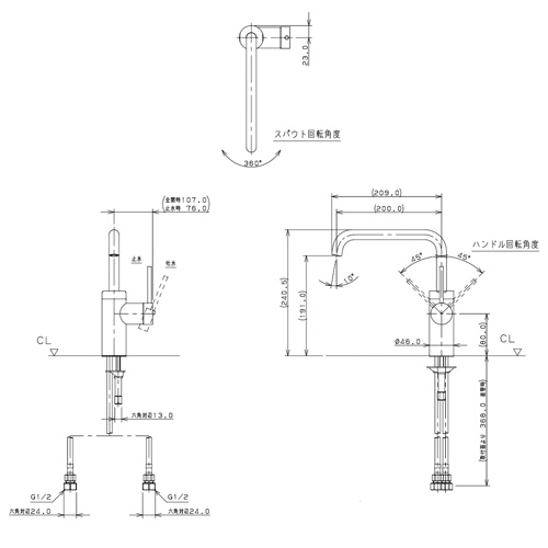 洗面用蛇口 VARUNA[台][シングルレバー混合水栓][スパウト200mm][吐水口高さ191mm][一般地寒冷地共用][ホワイト]