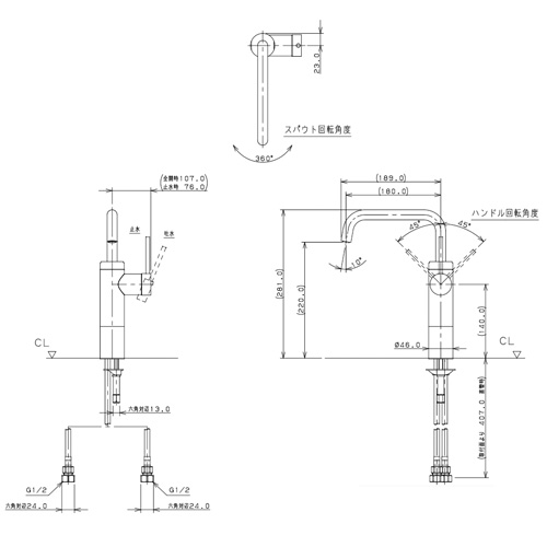 洗面用蛇口 VARUNA[台][シングルレバー混合水栓][スパウト180mm][吐水口高さ220mm][トール][一般地寒冷地共用][ホワイト]