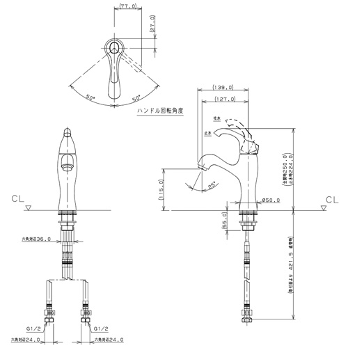 183-334|カクダイ|洗面用蛇口 ASURA[台][シングルレバー混合水栓][スパウト127mm][吐水口高さ115mm][一般地]|リフォームネクスト