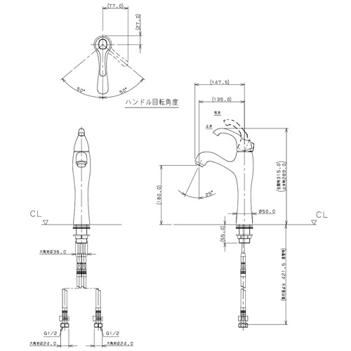洗面用蛇口 ASURA[台][シングルレバー混合水栓][スパウト135mm][吐水口高さ180mm][ミドル][一般地]