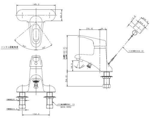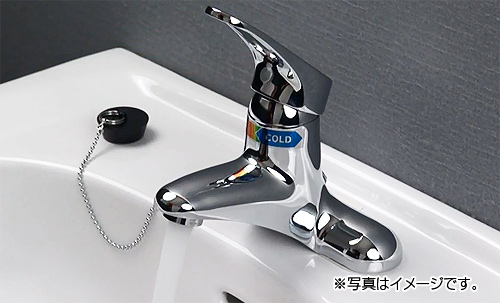 洗面用蛇口[台][シングルレバー混合水栓][スパウト773mm][湯水芯102mm][ゴム栓付][寒冷地]