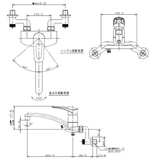 キッチン用蛇口[壁][シングルレバー混合水栓][給湯制限レバー][スパウト220mm][寒冷地]