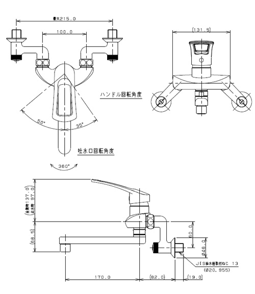 キッチン用蛇口[壁][シングルレバー混合水栓][給水制限レバー][首長170mm][一般地]