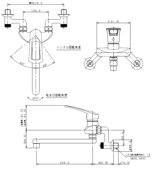 キッチン用蛇口[壁][シングルレバー混合水栓][給水制限レバー][首長220mm][一般地]