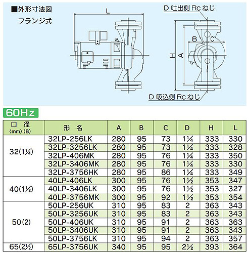●循環ポンプ LPシリーズ[フランジ式][単相100v][32mm][出力:400][周波数:60Hz]