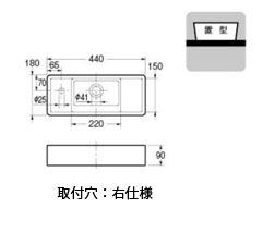 手洗器単品[ベッセル式][角形][水栓取付穴径:φ25][右側1ヶ所][Luju]