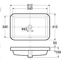 洗面器単品[ベッセル式][半埋込][角形][Luju]