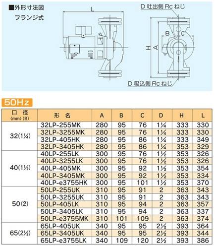 ●循環ポンプ LP-eシリーズ[フランジ式][三相200v][50mm][出力:750][周波数:50Hz]