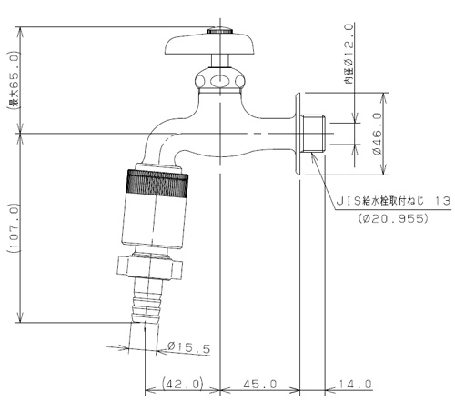 一般用蛇口[壁][単水栓][カップリング付き横水栓][呼13][一般地]