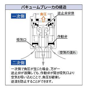 バキュームブレーカにより、負圧による逆流を防止することができます。