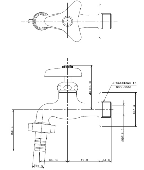 一般用蛇口[壁][単水栓][カップリング付き横水栓][呼13][一般地]