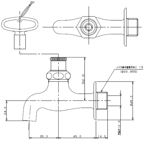 一般用蛇口[壁][単水栓][共用横水栓][かぎ式][呼13][一般地寒冷地共用]