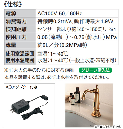 ・使用水温範囲:水温1度〜40度(一般上水道・凍結不可)