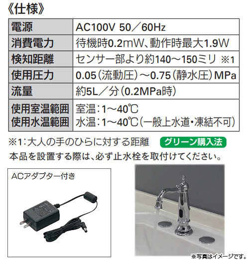 ・使用水温範囲:水温1度〜40度(一般上水道・凍結不可)