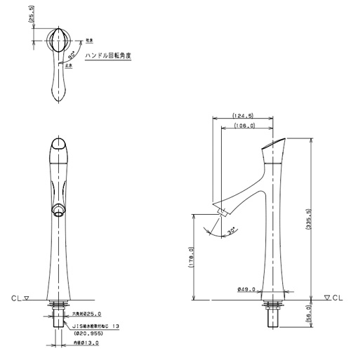洗面用蛇口 風シリーズ[台][単水栓][立水栓][スパウト106mm][吐水口高さ178mm][トール][一般地]
